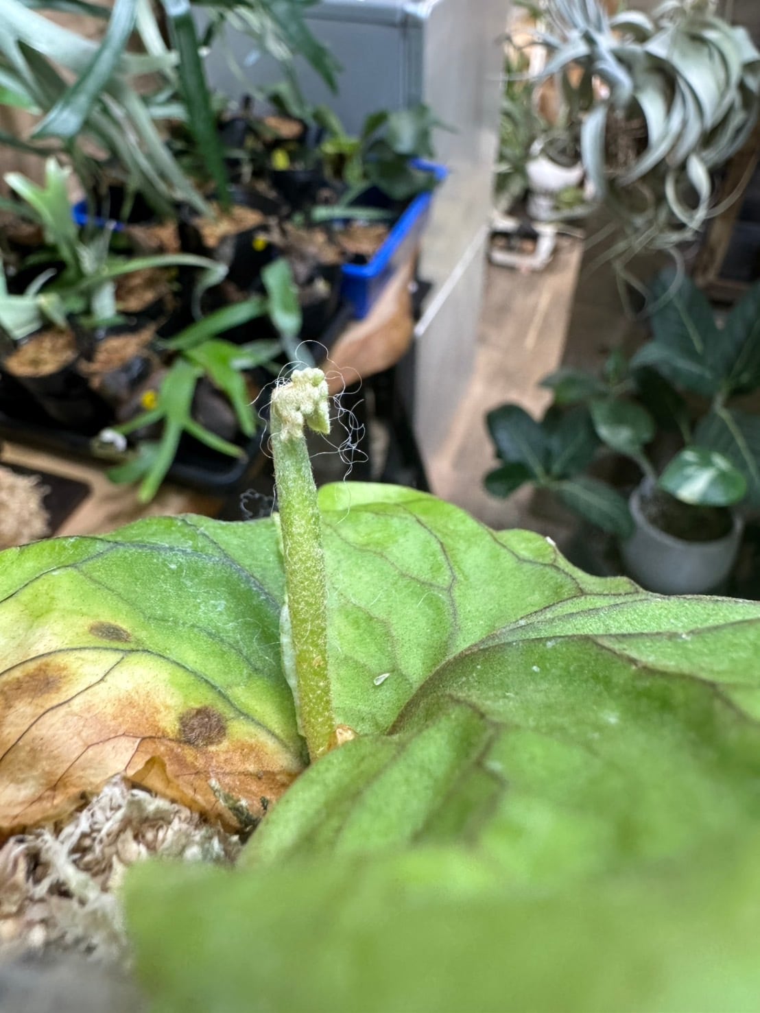 ビカクシダで1番と言っても過言ではないくらい人気の高い品種リドレイの中でも、細葉(Thin)です。ポットにて販売しておりますので、ご自身で板付けを行うことになります。水こけ半分ベラボン半分程度で板付けすると、良いです。