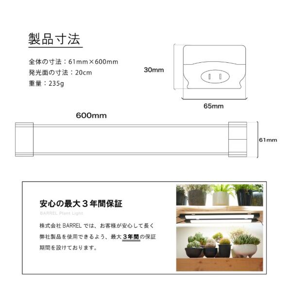 【BARREL SHELF GROW SLIM】バー型 最大15台連結可能 面発光 省スペースで均一に届けるやさしい光 色温度:4000K