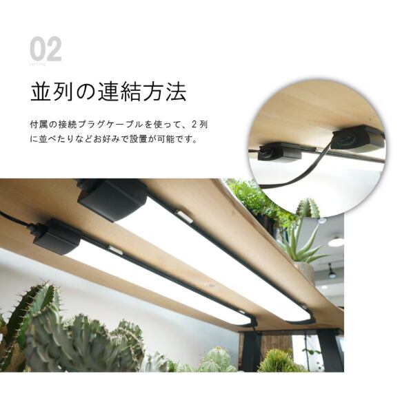 ○ライト同士を連結可能。必要な本数を接続し、広範囲の植物育成に対応。