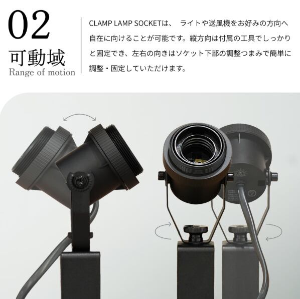 【Clamp Lamp Socket】|クランプランプソケット|角度調整可能、コード一体型